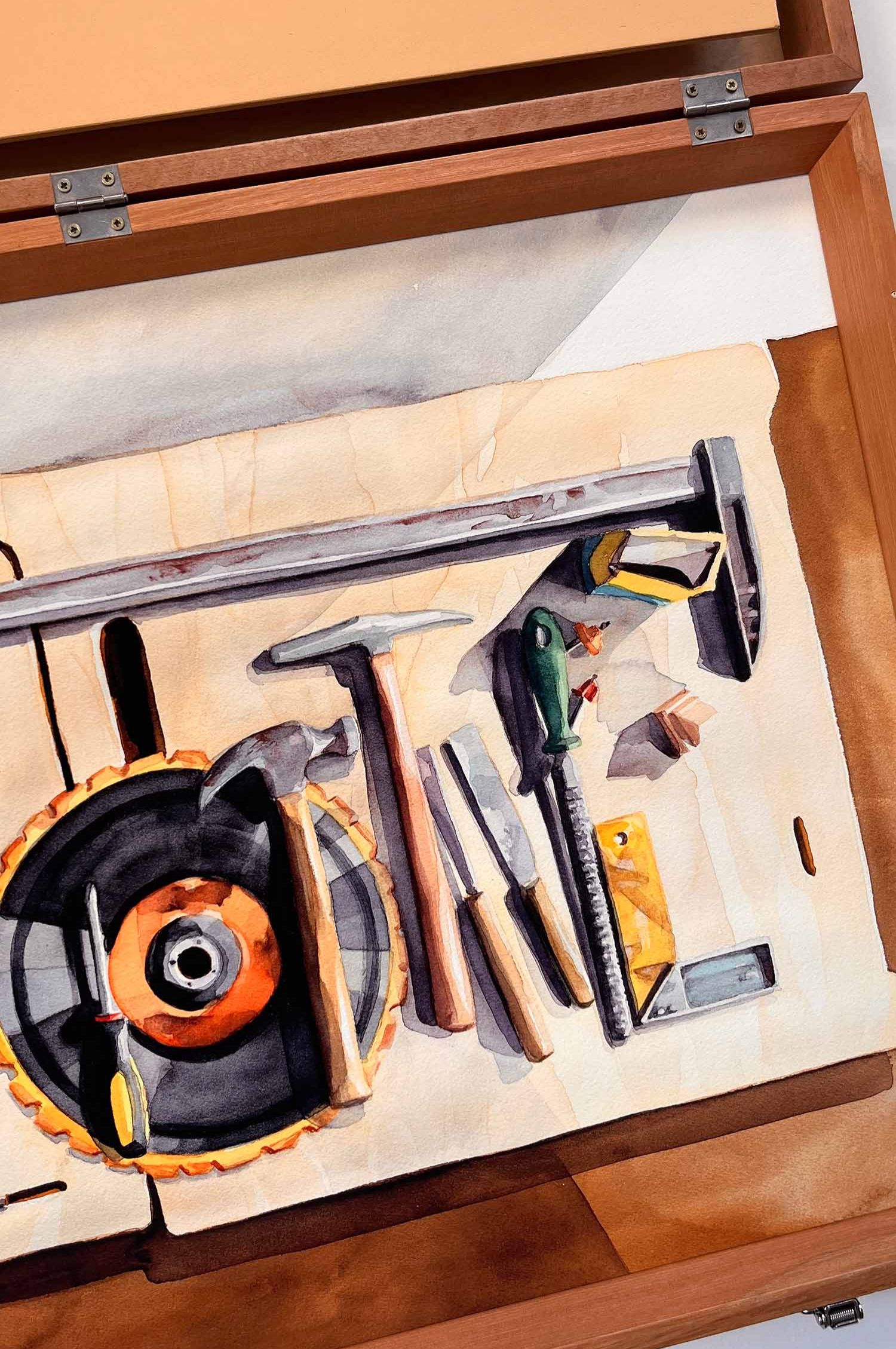 In meinem Haus wurde immer etwas gemacht. Meine Mutter hat zum Beispiel mit Öl gemalt, aber sie arbeitete auch mit Ton, Wollvlies und Holz. Es lagen also überall Materialien herum und diese Art von Aktivität war selbstverständlich. Mein Vater hingegen hat Antiquitäten restauriert. Er hat also immer Intarsie Arbeiten gemacht. Weißt du, was das ist? Es ist wie eine Art Schmuckarbeit mit kleinen Holzstücken, verschiedenen Holztönen oder verschiedenen Hölzern, die zusammengefügt werden, um zum Beispiel Blumenarrangements oder geometrische Figuren zu bilden. Ich weiß nicht, verschiedene Dinge. Ja, tatsächlich komme ich aus einer sehr ruhelosen Familie in dieser Hinsicht. Man sagt sogar, dass mein Ururgroßvater Ende des 19. Jahrhunderts aus Spanien kam, um Kirchen zu malen, stell dir das vor. Es ist also mehr als nur das Interesse. Ich glaube, meine Annäherung kommt daher, dass ich Werkzeuge schon immer als etwas Natürliches aufgenommen habe und instinktiv schon wusste, wie man sie benutzt.