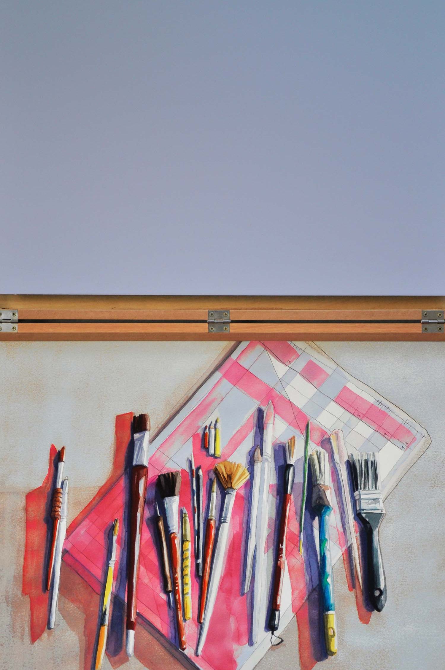 Besides, there is a humble nobility in the paper that moves me. Imagine that in China it was used to write on nearly 2.000 years ago. It is a light support but it has a lot of social thickness. It was fundamental to spread ideas and to share knowledge, scientific discoveries, botanical illustration, maps, poetry and Art. So it awakens inside me a sort of respect for History and for all people who came before us. If I think about the frescoes, for instance, I imagine it would have been a very radical change to quit the wall and that sacredness of the static, the enormous and the permanent, to start using paper which is much less grandiloquent. It is worked, generally, in smaller formats and this allows you to sketch, to make mistakes, to get into the logic of the portable and of the immediate reality. The canvas and the frame have still too much formality and museum smell, so in a way I fell that they are separated from real life. And of course in the paper world you find from those marvelous sheets made of pure cotton, pressed by hand, to the most common and the everyday paper used in school notebooks. This is nice because finally you realize that paper is a transversal material, it is everywhere and withstands thousands of different uses. I have a friend who recovers the same handicraft techniques of watercolor manufacturing used in the Middle Ages. She says that colors are born from the earth, that they are mostly stones and water. In fact, that is the name of her project. And it is true, because some natural pigments come out from plants, others are made from clays but they are mostly made out of minerals. Finally everything is simple, very noble and fundamental: paper…color…and water.